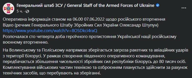5. "На фронте без существенных перемен. Горячие точки все те же - Северодонецк, Лисичанск, Попасная. На Донбасское и Херсонское направления противник перебрасывает новые подразделения".