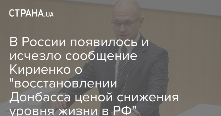 В России появилось и исчезло сообщение Кириенко о "восстановлении Донбасса ценой снижения уровня жизни в РФ"