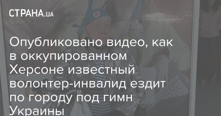 В оккупированном россиянами Херсоне мужчина-инвалид в тельняшке и берете десантника ездит по городу с аудиоколонками, из которых играет гимн Украины и песня "Червона калина".