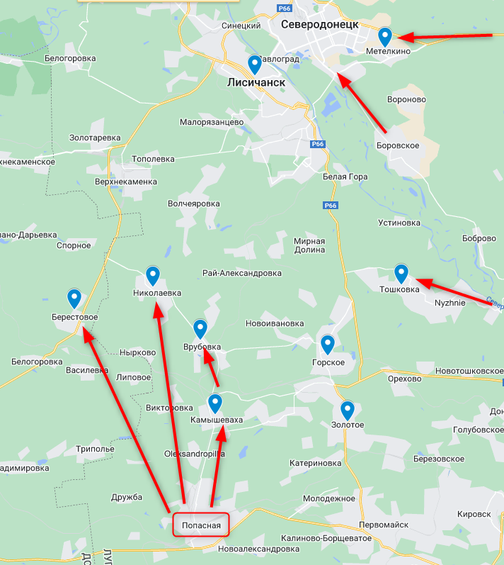 "Противник сосредоточил на севере области свои основные ударные силы и пытается атаковать одновременно на девяти направлениях. Наступление ведется с юга на север на направлениях Попасная - Камышеваха и далее на Лисичанск, Попасная - Николаевка, Попасная - Берестово", - заявил главком.