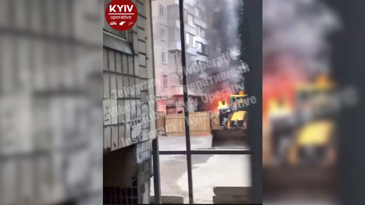 В центре Киева в районе районе КПИ прогремел взрыв. Горит автомобиль на улице Гаврилишина.