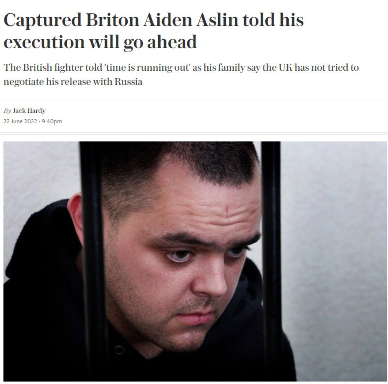 00.17 Осужденный в "ДНР" британец Эйден Эслин сообщил своим родственникам, что его скоро казнят. Об этом пишет Telegraph.
