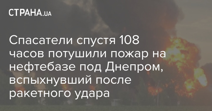 Спасатели спустя 108 часов потушили пожар на нефтебазе под Днепром, вспыхнувший после ракетного удара