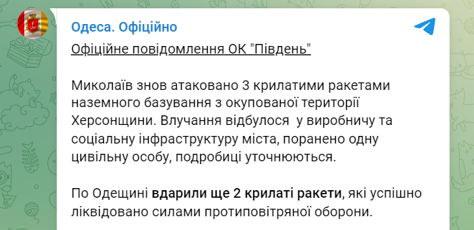 В четверг, 23 июня, российские войска ударили по Николаевской области тремя крылатыми ракетами, которые были запущены с территории Херсонской области.