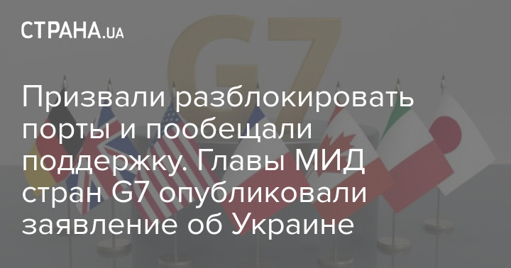 Главы МИД стран G7 опубликовали совместное заявление, в котором Россию призвали разблокировать украинские порты и пообещали и дальше поддерживать Украину.