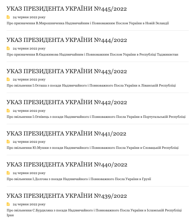 Зеленский уволил послов в Грузии, Словакии, Португалии и других странах