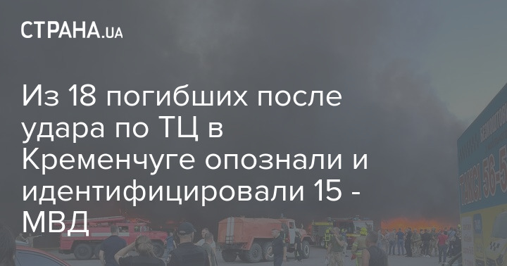 Из 18 погибших после удара по ТЦ в Кременчуге опознали и идентифицировали 15 - МВД