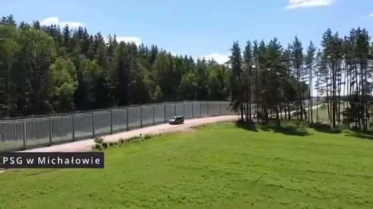 Забор на границе Польши и Беларуси. Скриншот видео