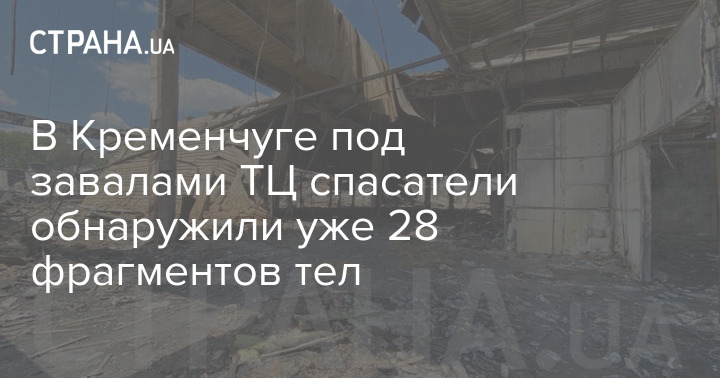 Спасатели обнаружили уже 28 фрагментов тел во время разбора завалов подвергшегося ракетному удару ТРЦ в Кременчуге. Таким образом, по состоянию на утро 1 июля обнаружены 18 тел погибших и 28 фрагментов тел.