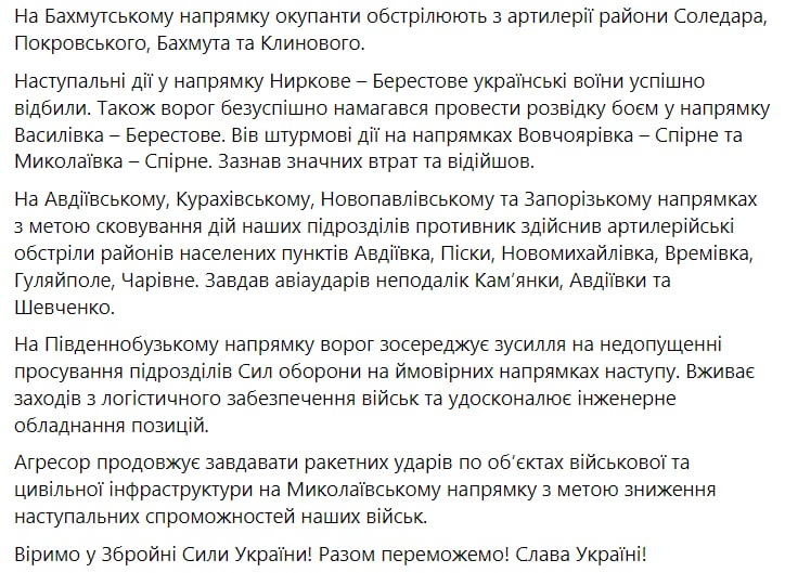 Самая напряженная обстановка сейчас в Донецкой и Луганской области - от Лисичанска до Бахмута, где продолжаются бои.