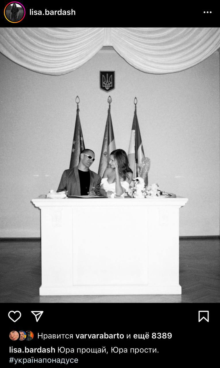 "Юра прощай, Юра прости. Украина превыше всего", - написала Лиза Бардаш.