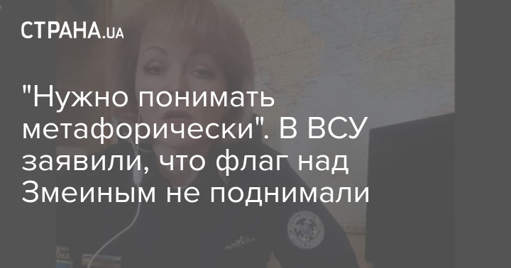 Пресс-секретарь Оперативного командования "Юг" Наталья Гуменюк уточнила свои слова о поднятом флаге Украины над островом Змеиный. Она говорит, что ее слова о поднятом флаге следует "понять метафорически", а опубликованное фото - старое.