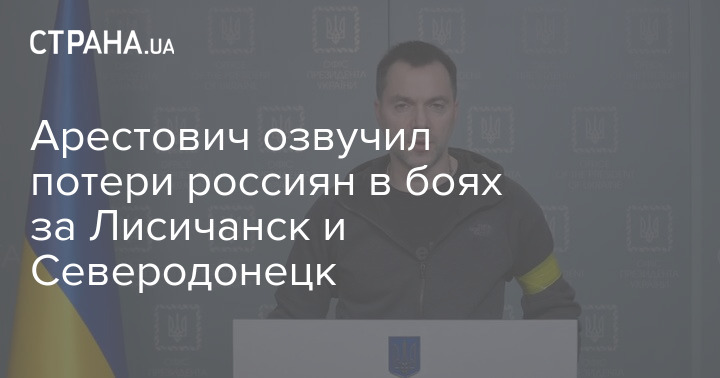 Советник главы Офиса президента Украины Алексей Арестович сообщил, что во время наступления на Лисичанск и Северодонецк войска РФ потеряли в бою около семи тысяч солдат.