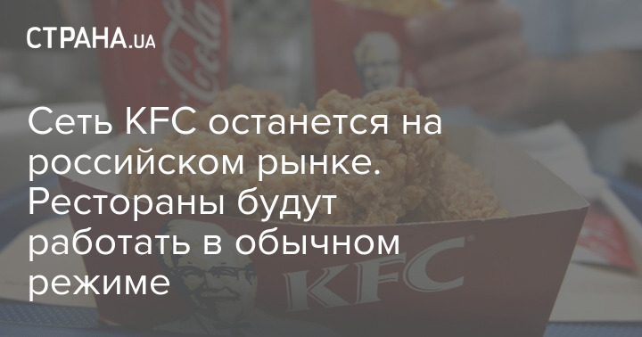 Бренд общественного питания KFC продолжит свою работу на российском рынке, а рестораны франчайзи продолжат функционировать в обычном режиме.