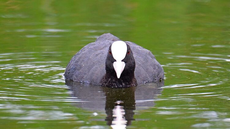 Чернобыльский радиационно-экологический биосферный заповедник посвятил пост в соцсети лысухе обыкновенной, или лыске (Fulica atra) – малочисленной птице в зоне отчуждения.