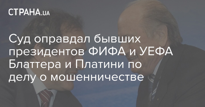 Бывший президент Международной ассоциации футбола (ФИФА) Йозеф Блаттер и экс-глава Союза европейских футбольных ассоциаций (УЕФА) Мишель Платини оправданы швейцарским судом по делу о мошенничестве, недобросовестном управлении, злоупотреблении доверием и подделке ценных бумаг.