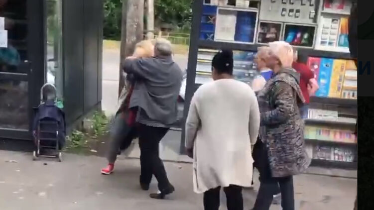 После чего на неё набросилась торговавшая рядом женщина, а мужчина вылил ей на голову ведро краски. На видео видно конец драки, где женщина конфликтует с несколькими прохожими.