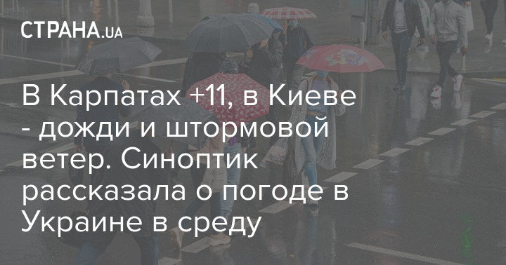 В северных регионах пройдут местами грозы, ожидается сильный ветер. Столбики термометров покажут от +16 до +22 градусов. В центральных областях будет сухо, днем ​​в среду дожди появятся в Винницкой области, а вечером осадки возможны по всех областях, однако короткие и небольшие. В течение дня будет +20...+24 градуса, в Днепре до +26 градусов, в Винницкой области +18...+20 градусов.