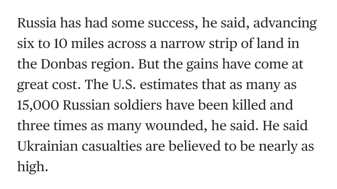 08:15 По оценкам США, во время наступления на Донбассе примерно 15 000 российских солдат были убиты и в три раза больше ранены.