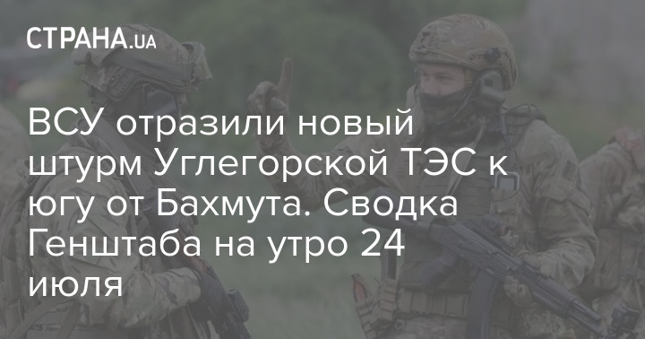 ВСУ отразили новый штурм Углегорской ТЭС к югу от Бахмута. Сводка Генштаба на утро 24 июля