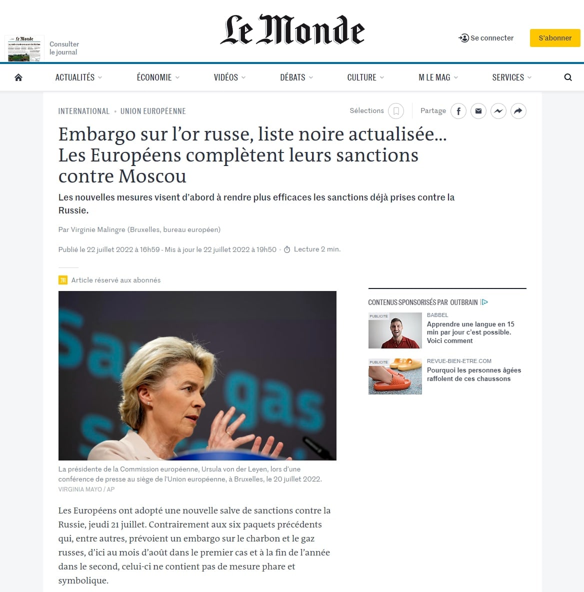 10:27 ЕС исчерпал возможности по введению ограничительных мер против РФ, пишет Le Monde со ссылкой на неназванного дипломата.