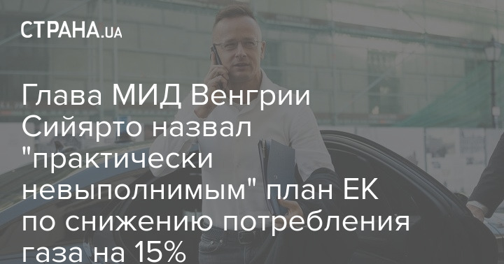 Глава МИД Венгрии Петер Сийярто заявил, что план Еврокомиссии по снижению потребления газа на 15% "практически невыполним".