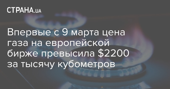 Цена на газ на европейской бирже превысила 2200 долларов за тысячу кубометров. Это произошло впервые с 8 марта.