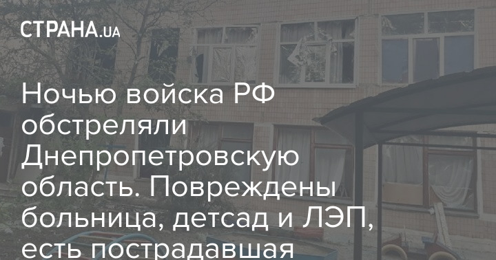Ночью войска РФ обстреляли Днепропетровскую область. Повреждены больница, детсад и ЛЭП, есть пострадавшая