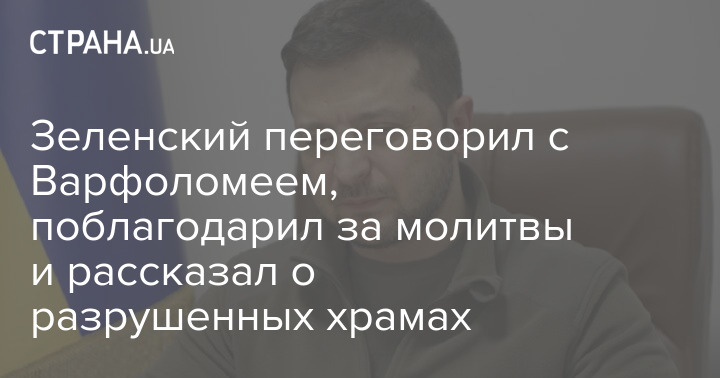 Зеленский переговорил с Варфоломеем, поблагодарил за молитвы и рассказал о разрушенных храмах