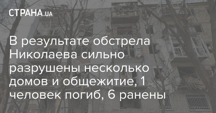В результате обстрела Николаева сильно разрушены несколько домов и общежитие, 1 человек погиб, 6 ранены