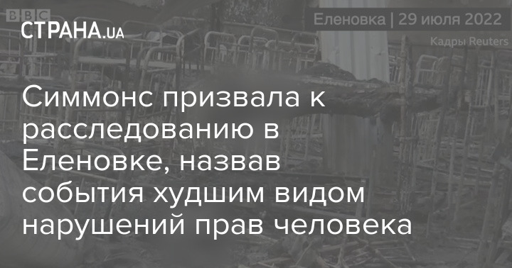 Посол Великобритании в Украине Мелинда Симмонс заявила, что массовое убийство украинских военнопленных в Еленовке нуждается в расследовании.