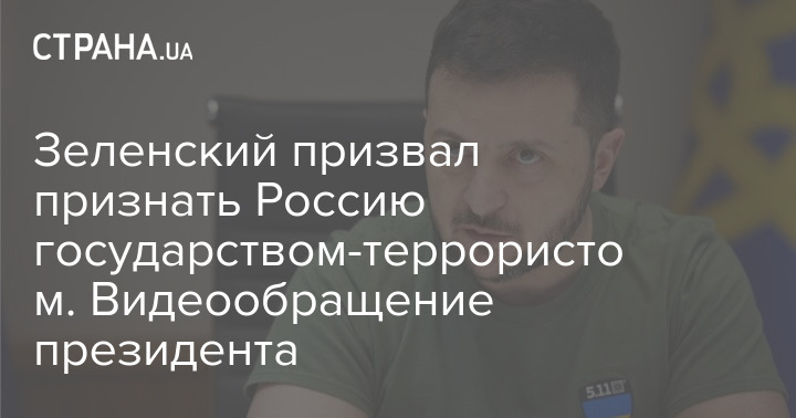 Зеленский призвал признать Россию государством-террористом. Видеообращение президента