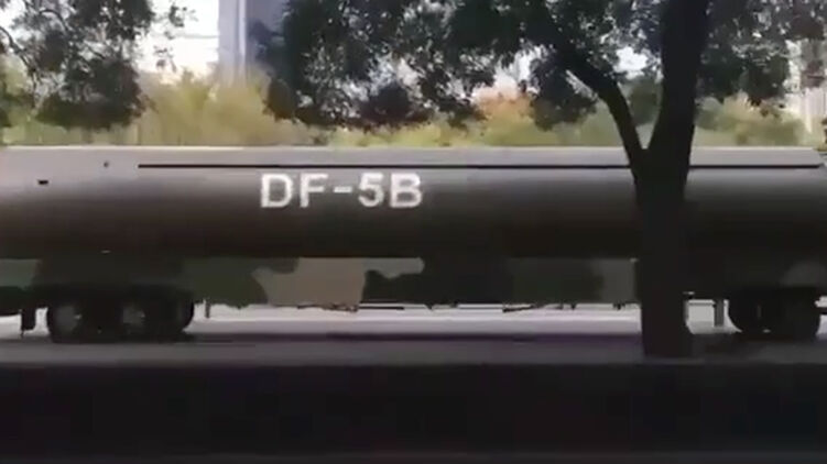 Также появилось видео перевозки по территории Китая межконтинентальной ракеты DF5b, которая способна пролететь 12-15 тысяч километров и может нести от трех до восьми водородных боеголовок. То есть, может долететь до США.
