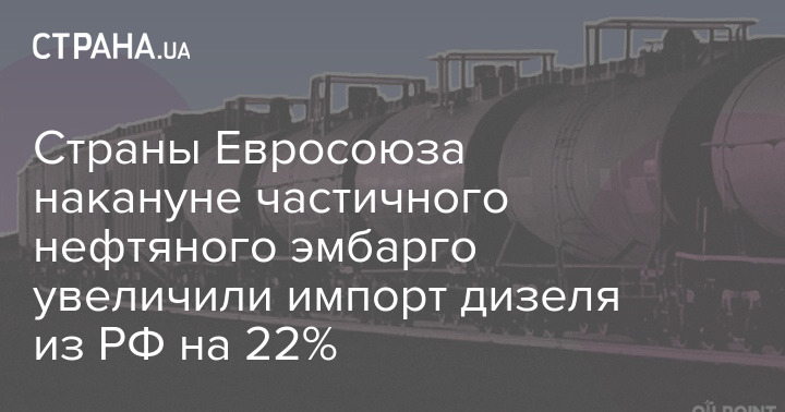 Страны Евросоюза накануне частичного нефтяного эмбарго увеличили импорт дизеля из РФ на 22%