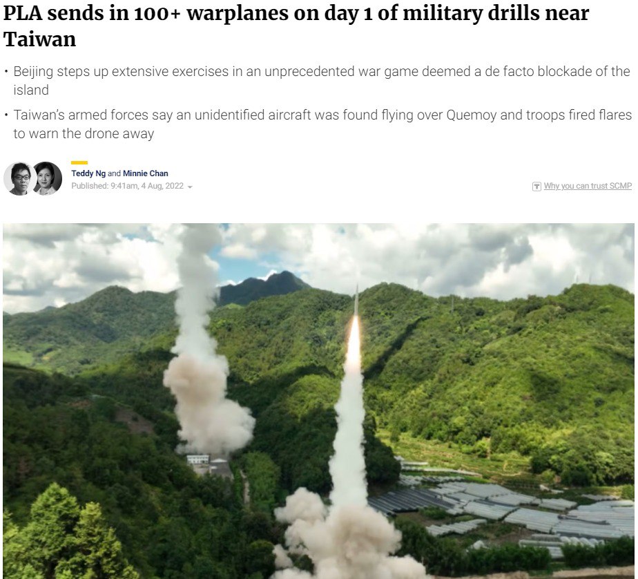 Напомним, что в ответ на визит спикера Палаты представителей Конгресса США Нэнси Пелоси на Тайвань Китай начал вокруг острова масштабные военные учения, которые затрагивают тайваньские территориальные воды.