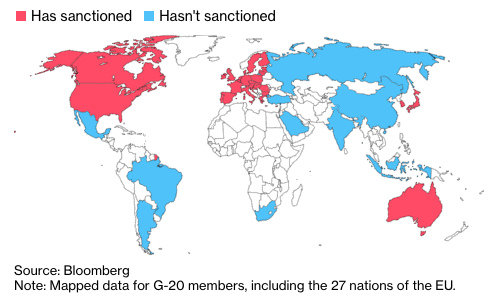 Многие из стран G20 по всему миру, хоть и не помогают Москве обойти санкции, но выступили против ее экономической изоляции.