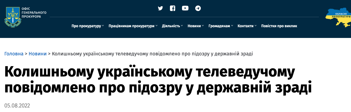 Генпрокуратура объявила подозрение в госизмене украинскому журналисту, который работает на российском ТВ