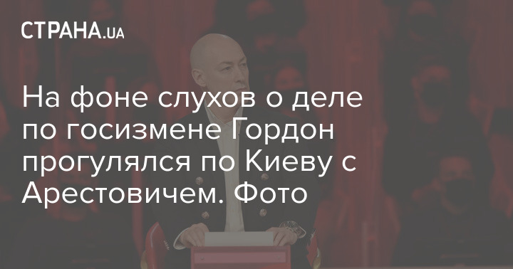 Журналист Дмитрий Гордон примерно около 17:00 прогуливался вместе с советником главы Офиса президента Алексеем Арестовичем в Киеве около Оперного театра. Там их заметили журналисты "Страны".