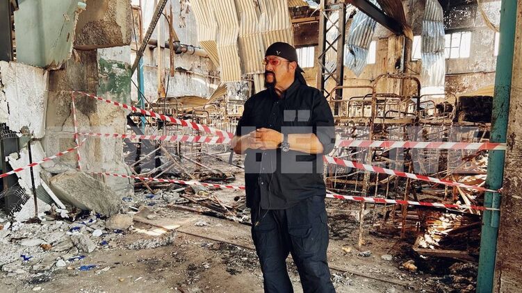 Помимо прочего, на развалинах колонии в Еленовке побывал и американский актер с российским гражданством Стивен Сигал, который ранее вступил в партию "Справедливая Россия" и потребовал признать "ЛДНР". Его фото опубликовал Телеграм-канал "СоловьёвLive".