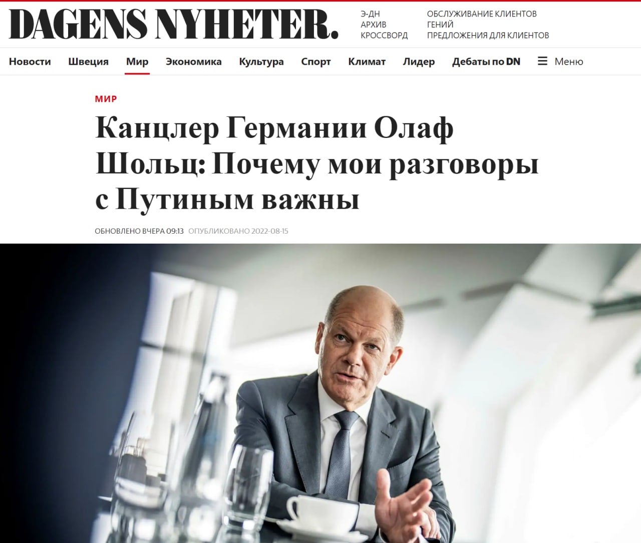 Он не думает, что это произойдет в обозримом будущем. При этом Шольц считает, что Западу нужно вести прямые переговоры с Россией.