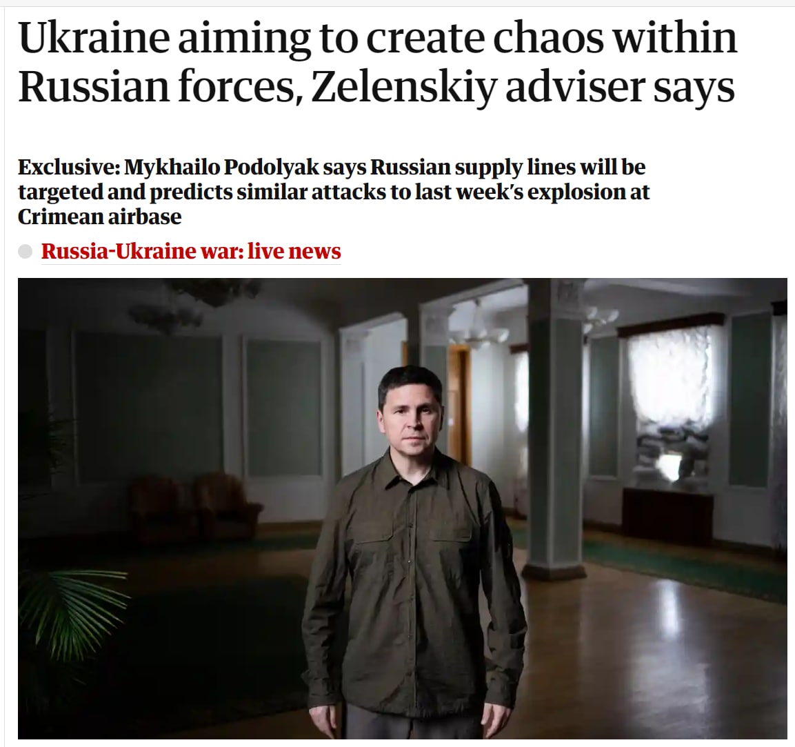 08:27 Советник главы ОП Михаил Подоляк анонсировал новые взрывы Крыму в течение 2-3 ближайших месяцев. Об этом он заявил в интервью The Guardian.