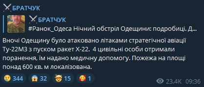 09:49 Появились подробности ночного удара по Одесской области.