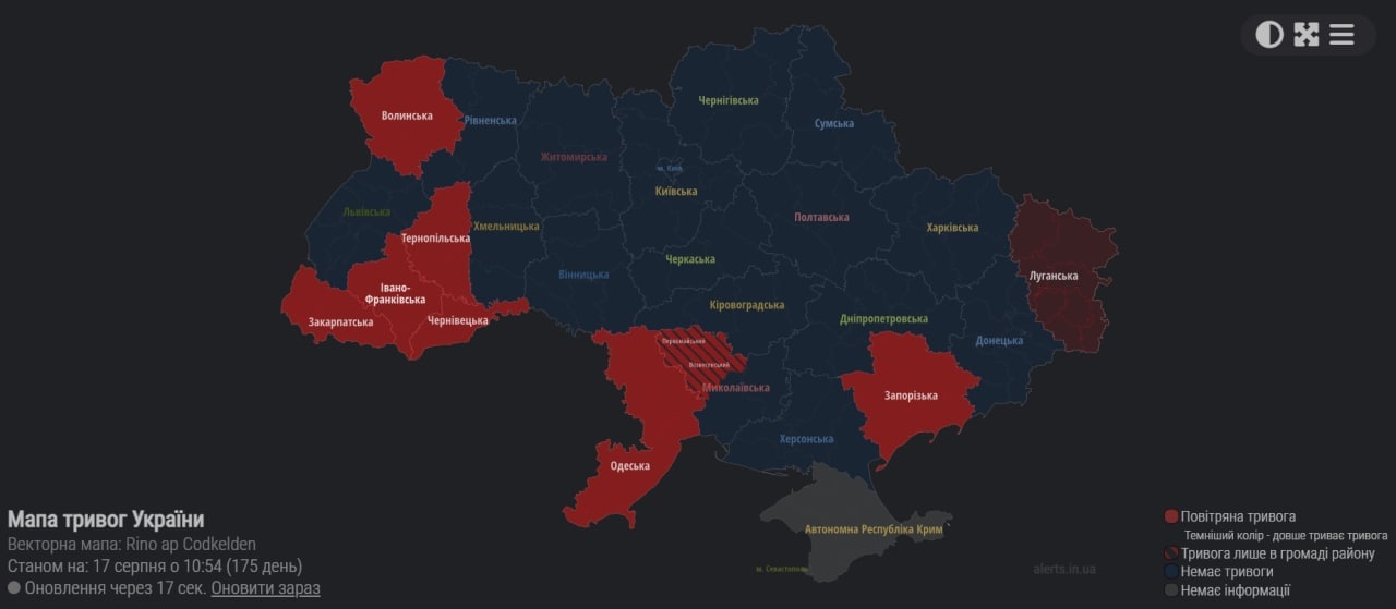 В среду, 17 августа, в Украине идет уже 175-й день войны с Россией.