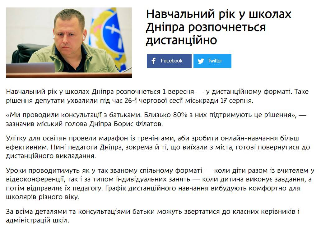 В Днепре учеба в школах начнется в онлайн-формате. 80% родителей поддержали решение местных властей