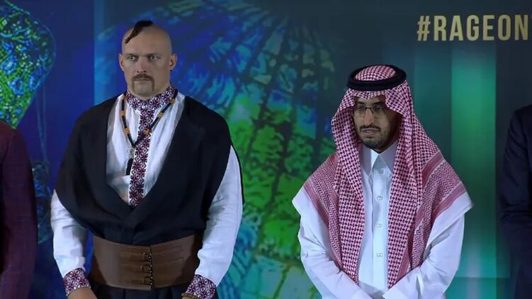 Усик на пресс-конференции перед реваншем с Джошуа надел костюм казака и спел "Червону калину". Видео