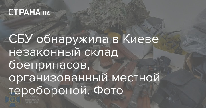 Служба безопасности Украины обнаружила в Киеве склад боеприпасов, организованный местной теробороной. Нарушителям предъявлены обвинения по ст. 263 (незаконное обращение с оружием, боеприпасами или взрывчатыми веществами).