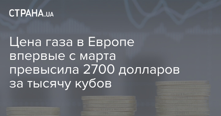 Цена газа в Европе впервые с марта превысила 2700 долларов за тысячу кубов