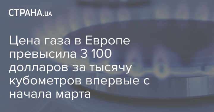 Цена газа в Европе превысила 3 100 долларов за тысячу кубометров впервые с начала марта. Такой результат показали ториги на лондонской бирже Intercontinental Exchange (ICE).