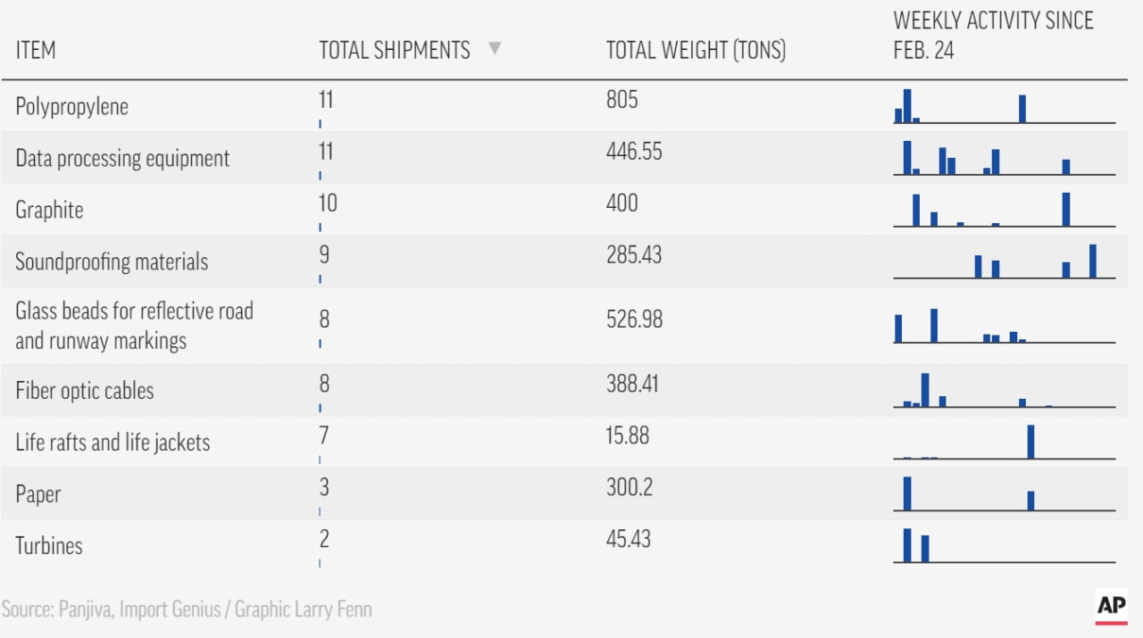 08:02 Агентство "Ассошиэйтед Пресс" обнаружило, что более 3600 партий древесины, металлов, резины и других товаров, прибывших в США из России с тех пор, как в феврале она начала вторжение в Украину.