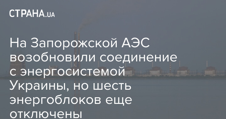 На Запорожской АЭС возобновили соединение с энергосистемой Украины, но шесть энергоблоков еще отключены